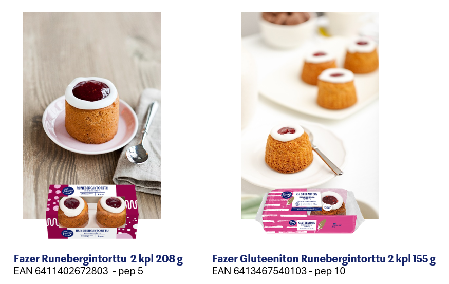 Nämä sesonkiherkut ovat saatavilla rajoitetun ajan (2.1. - 5.2.2026) – varmista, että asiakkaasi pääsevät nauttimaan Runebergin päivän tunnelmasta Fazerin klassikoilla.